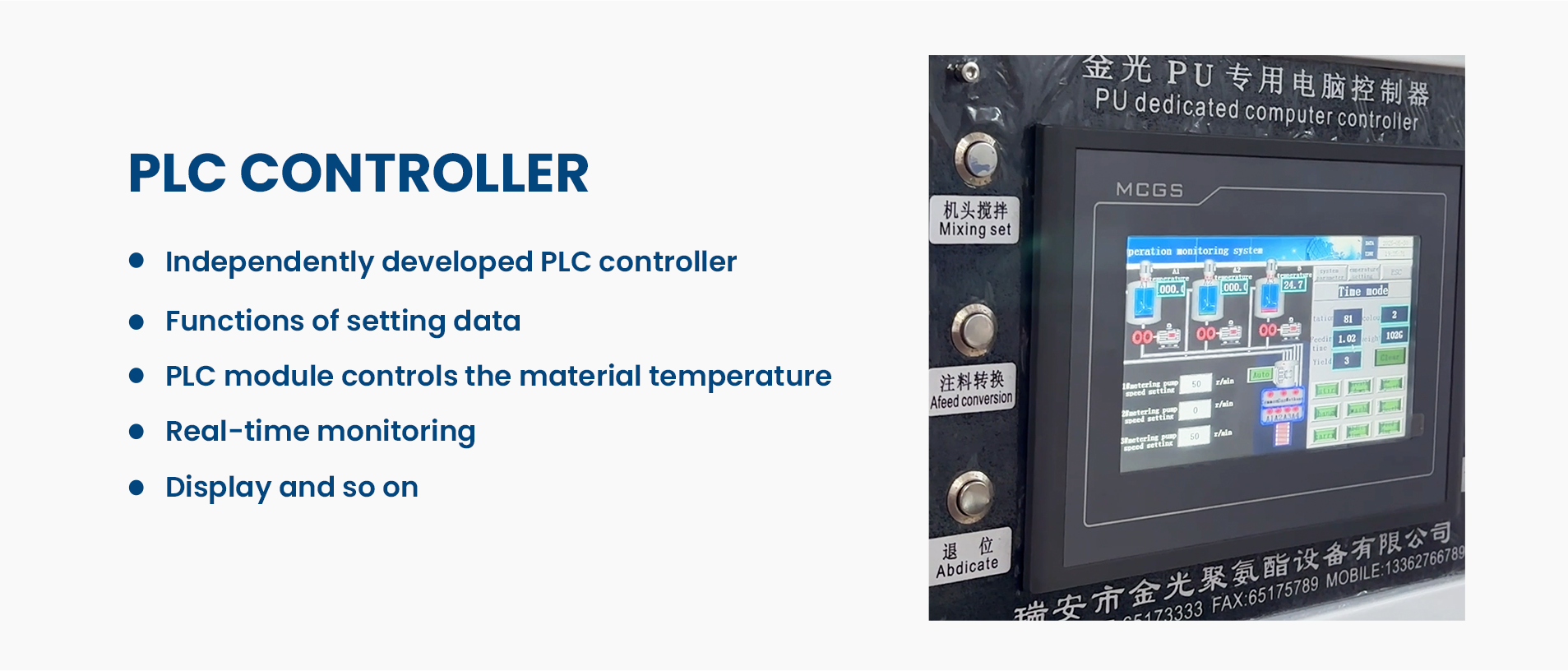 Put the raw material into PU sole pouring machine the storage tank for pressurization by the pressurizing unit, pass through the raw material circuit, and then reach the storage tank to ensure that the system is not blocked,This is a circulation system.