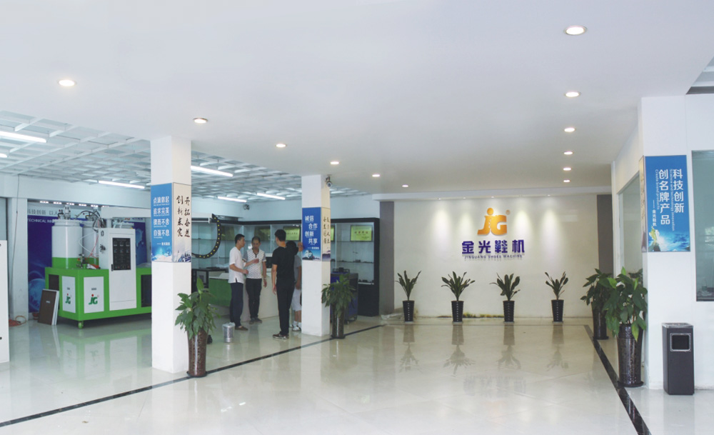 Our company is mainly professional engaged in the research ,design ,development and sale PU shoe pouring machine enterprise,and our machine is approved by CE certificate.We Self-developed a series of PU shoe pouring machine of JG-801,JG-803,JG-805,JG-806,JG-807,JG-808 and JG-901 Ring Production Line JG-902 Elevated Heating Molding Line ,JG-903 Conveyor Line and so on.