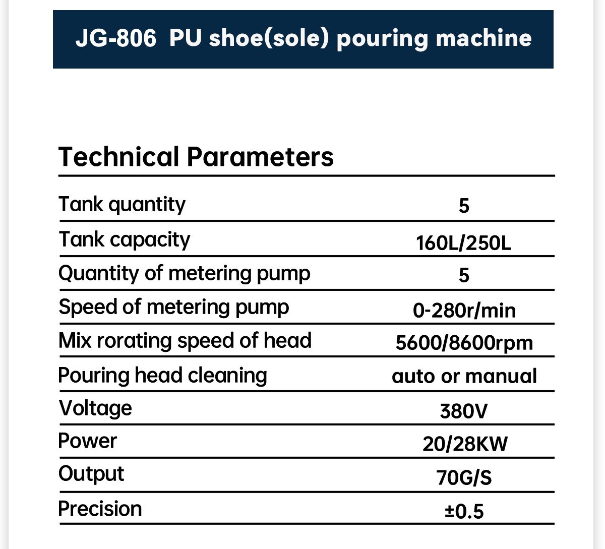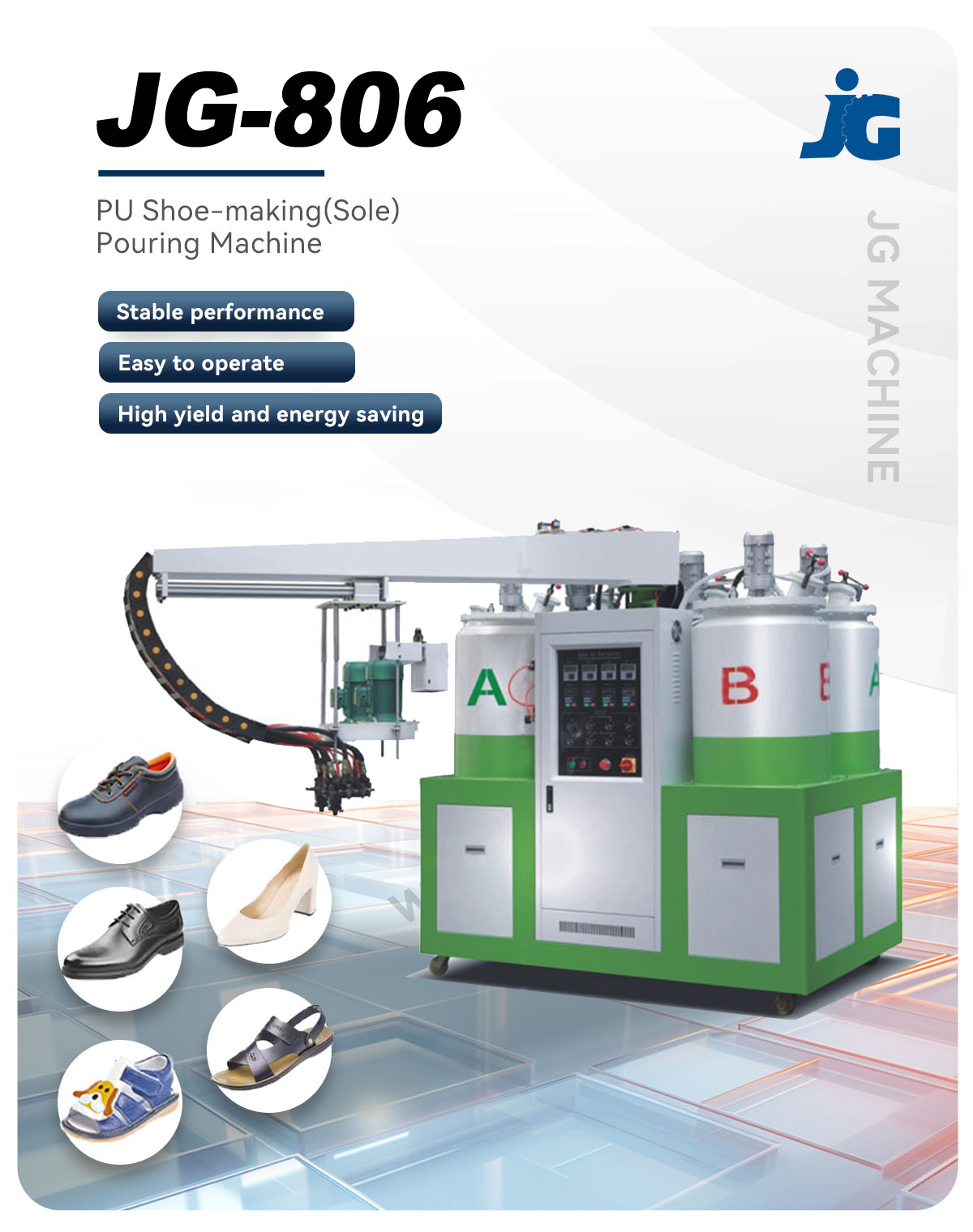 JG-806 Polyurethane sole pouring machine Characteristics: